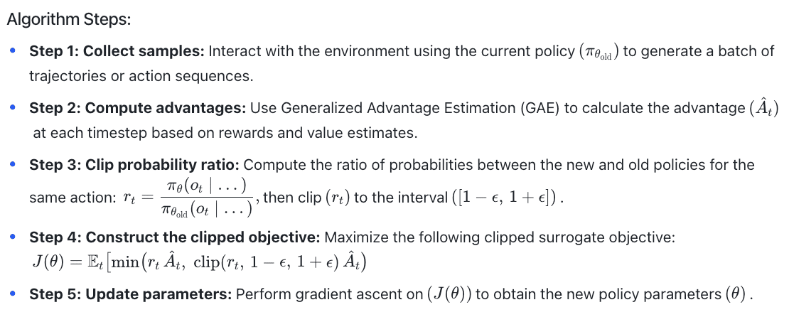 This clipping approach in PPO works because it prevents the model from making drastic policy changes that could hurt performance. The model can still learn and improve, but it does so in controlled steps.